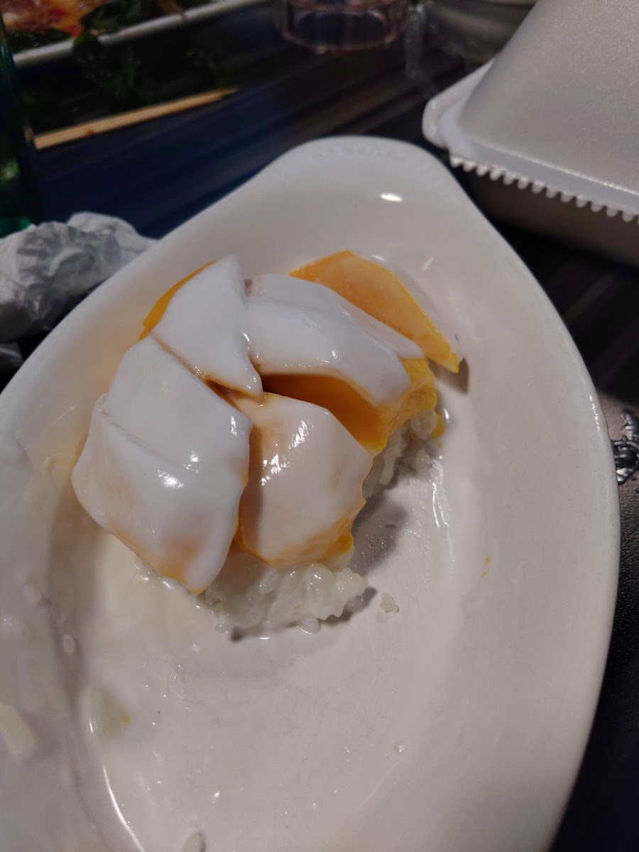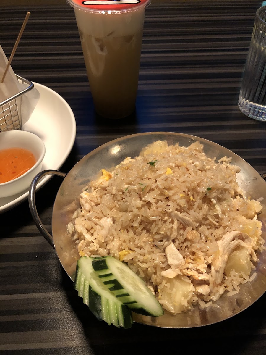 We visited on a Saturday afternoon and the place was packed. It took a few minutes for someone to even come ask us for drinks. surprisingly they offer lunch specials on a saturday which is unlike many other Thai places. The lunch special came with Tom yum soup and a spring roll. We ordered Pineapple curry chicken and Kee mao fried rice. Food portions were generous and food tasted really good. We also ordered the coconut icecream which I didnt really like. Service was very chaotic and slow. We got our main course before the soup. Each item came one by one rather than together. I hope they improve on these things for a better overall experience. The complex was very busy and we had alot of trouble finding parking.